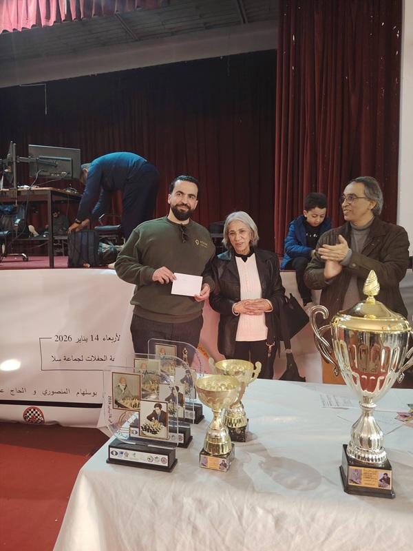 Sans grand effort, le jeune Yasser Haj Kholti, champion du Maroc en titre et joueur international, s’est adjugé vainqueur de la 2ème édition du tournoi des vétérans slaouis des échecs que la salle des fêtes de la commune de Salé a abrité la journée du 14 janvier 2026 devant 110 joueurs dont l’élite du Maroc toutes catégories confondues !